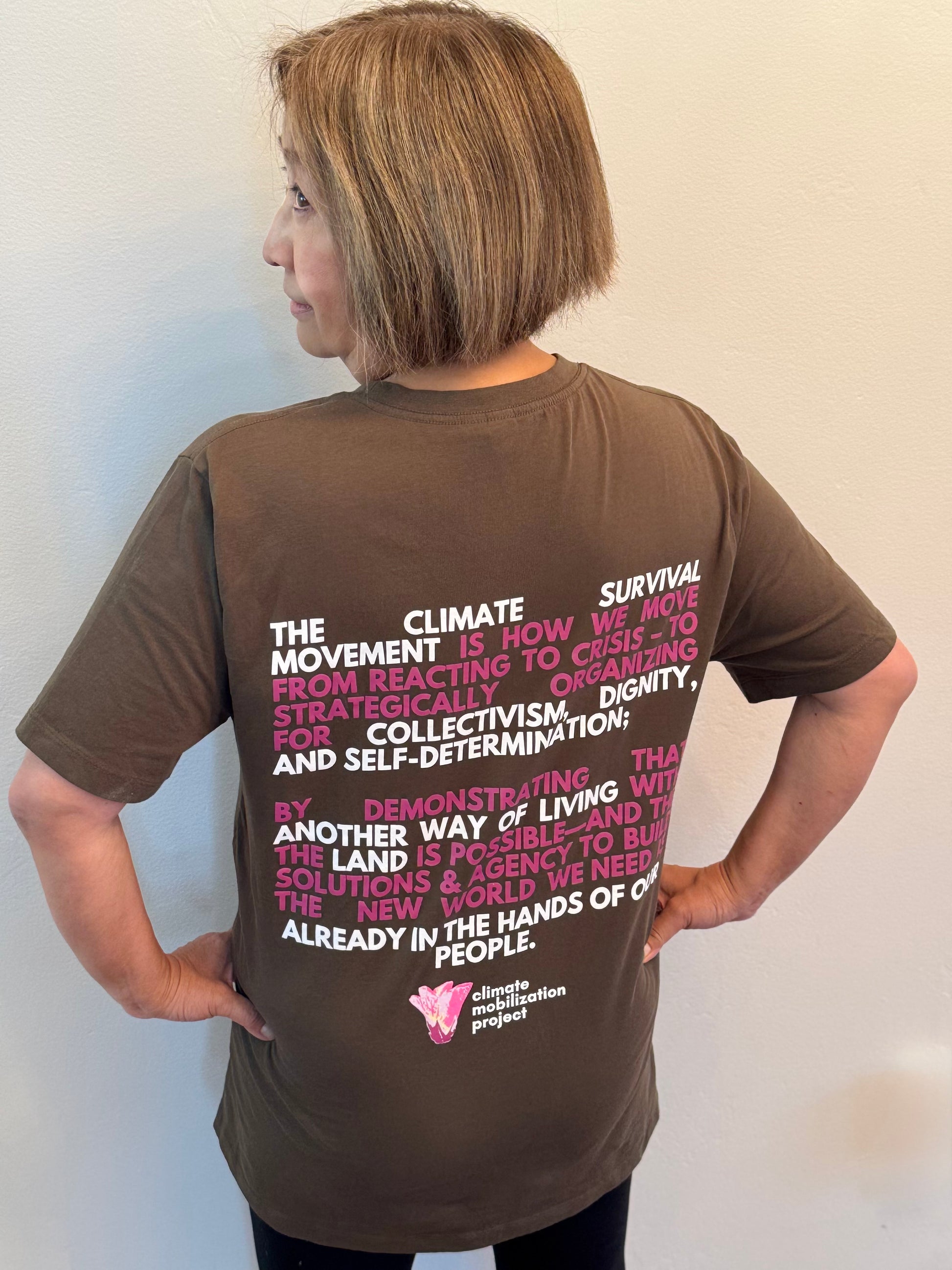 🌱 Designed by a Climate Mobilization Project collaborator and local farmer-activist, the T-shirt features a scan of a hibiscus blossom grown at Dogbane Movement Hub - where our collective struggle to survive crises has become a source of power. Dogbane is a place where hundreds of young leaders have rolled up our sleeves to begin building a new future, while tending plants that connect us to generations of struggle that came before. 🌱